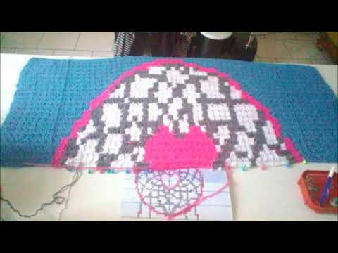 ma première couverture en c2c réaliser aux crochet avec le dessin de l'attrape rêve